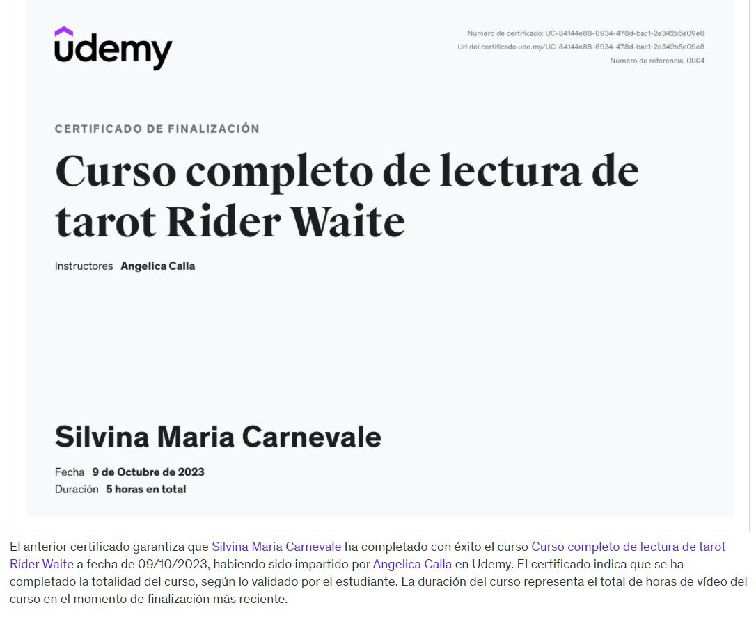 - Lectura Tarot Rider Waite – Angelica Calla – Udemy