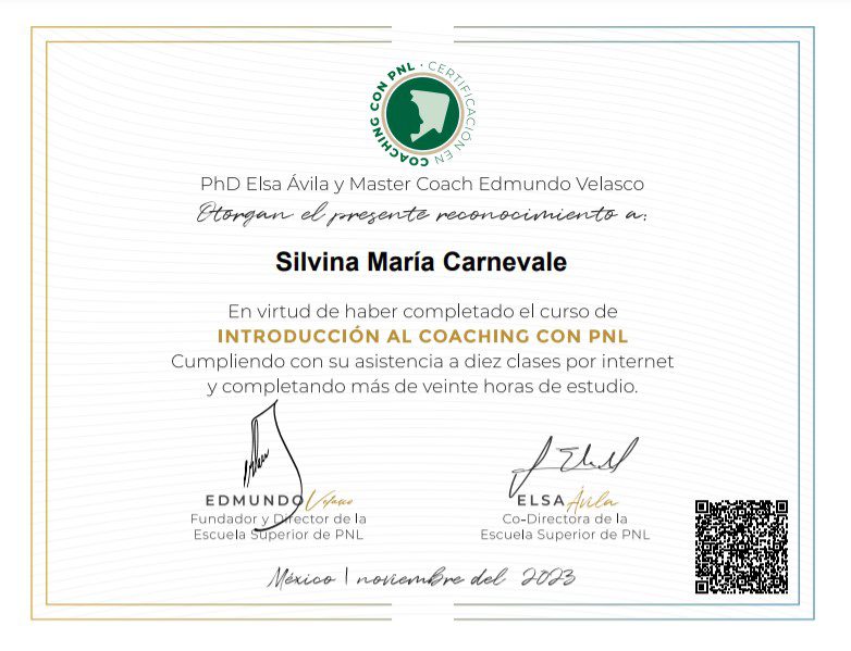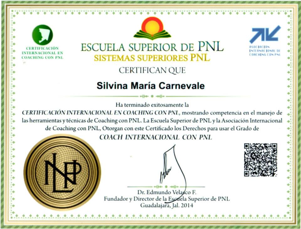 - Coach Internacional con PNL – Escuela Superior de PNL – Dr. Edmundo Velasco – 150 horas