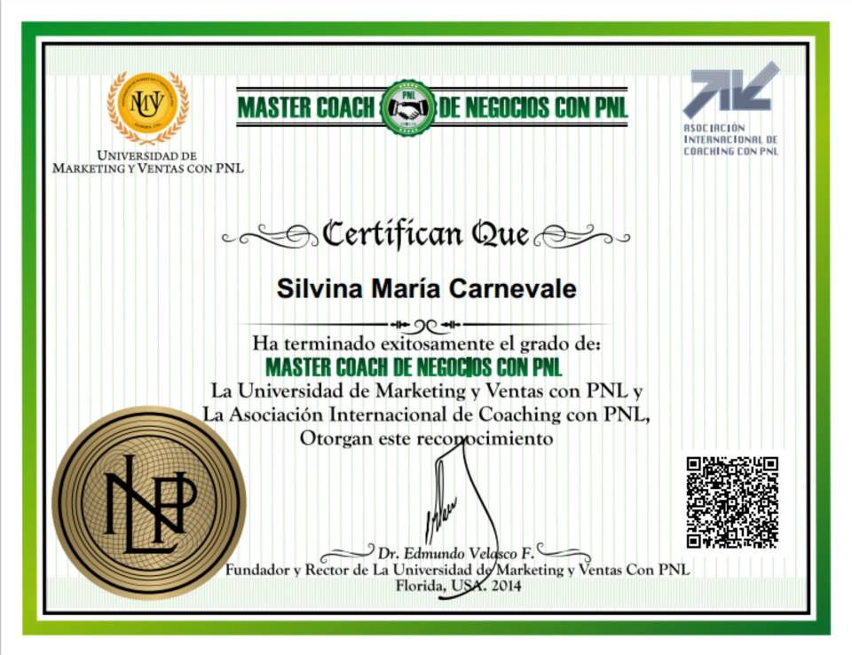 - Master Coach de Negocios con PNL – Universidad de Marketing y Ventas – Dr. Edmundo Velasco – 80 horas