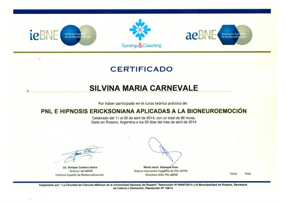 - Bioneuroemoción – Módulo 2 – PNL e Hipnosis Ericksoniana – ieBNE y Synergy&Coaching – 96 horas