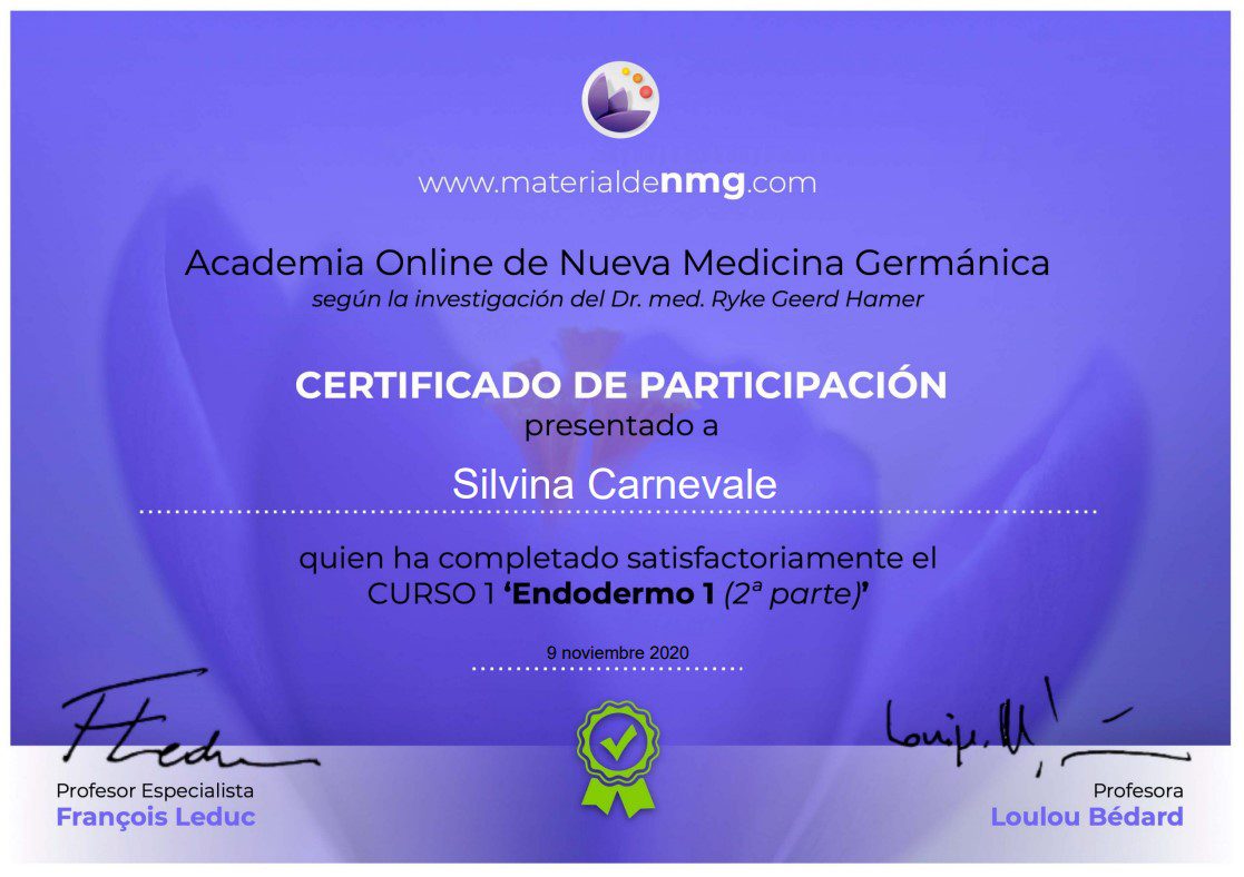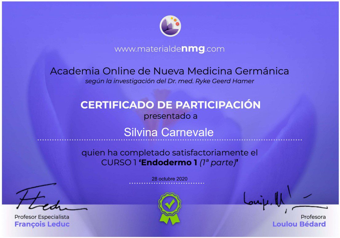 - Módulo 1 y 2 – Bases de la Descodificación Biológica de las Enfermedades – Escuela Francesa de Biodescodificación – Director Christian Fleche