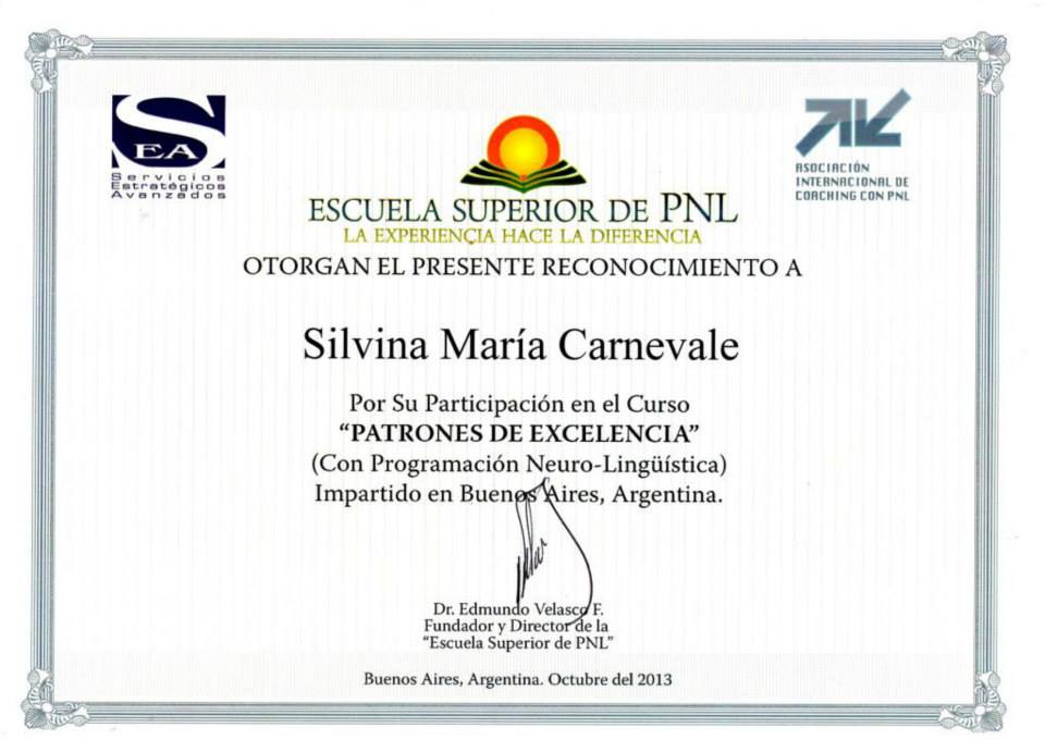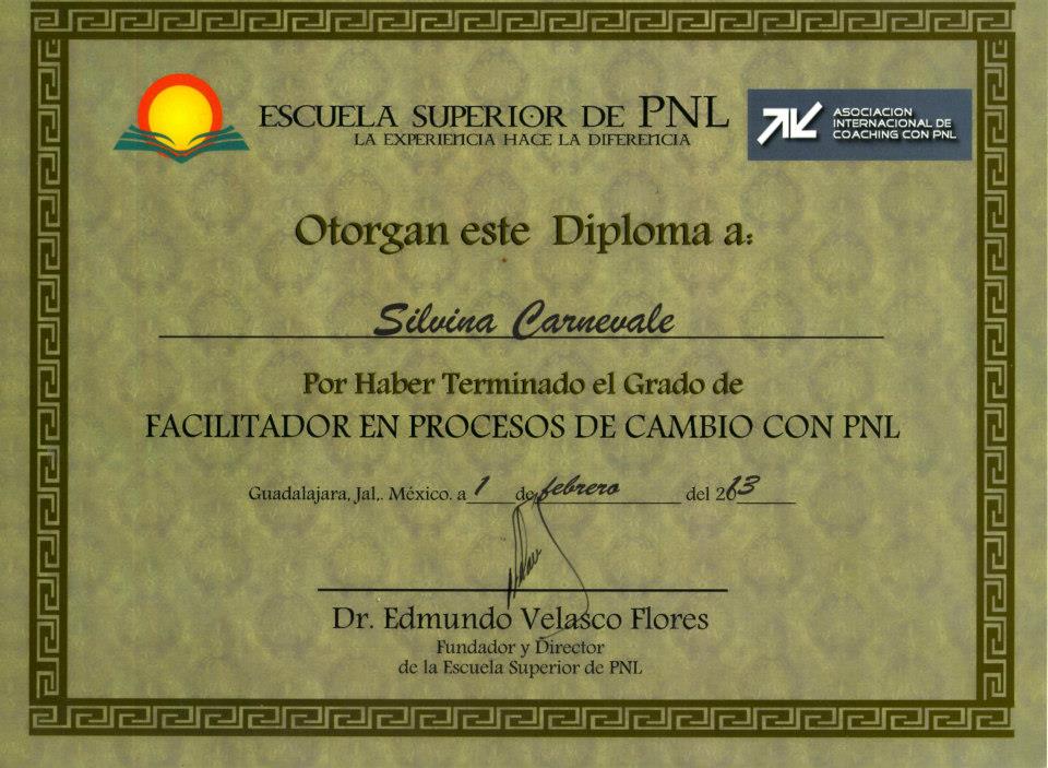 - Facilitador de Procesos de Cambio con PNL – Escuela Superior de PNL – Dr. Edmundo Velasco – 80 horas